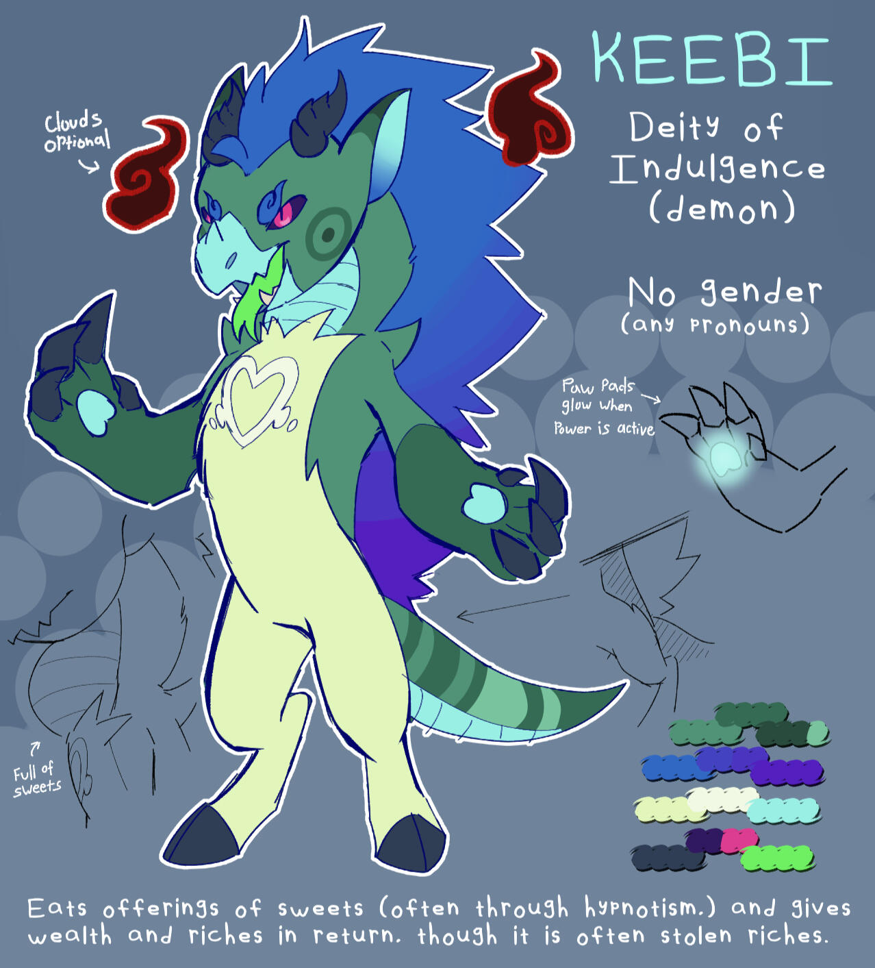 While I hold the rights to the completed design(s) and my art(s) of said design(s), you still retain character ownership and may do whatever you wish with it.